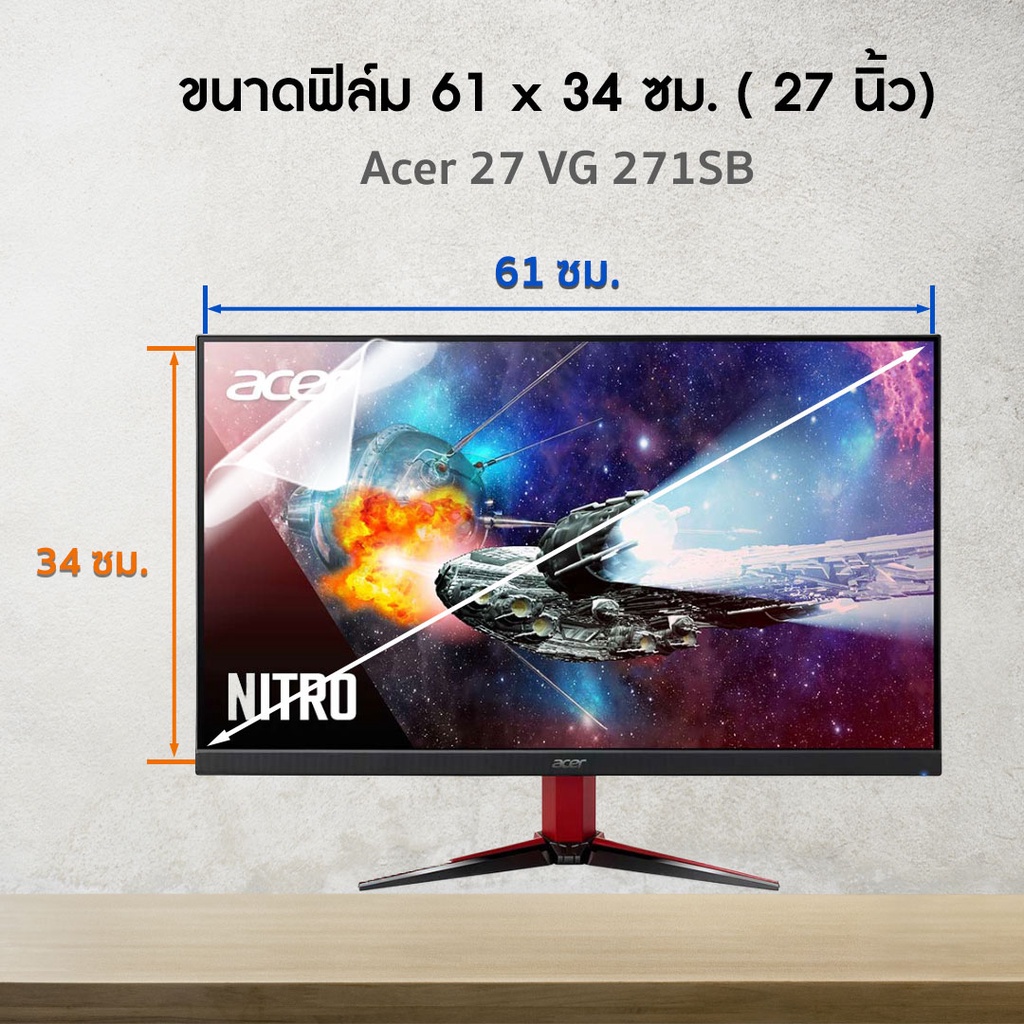 ฟิล์มกันรอย จอคอมพิวเตอร์ รุ่น Acer 27 VG 271SB (ขนาดฟิล์ม 27 นิ้ว : 61×34 ซม.)