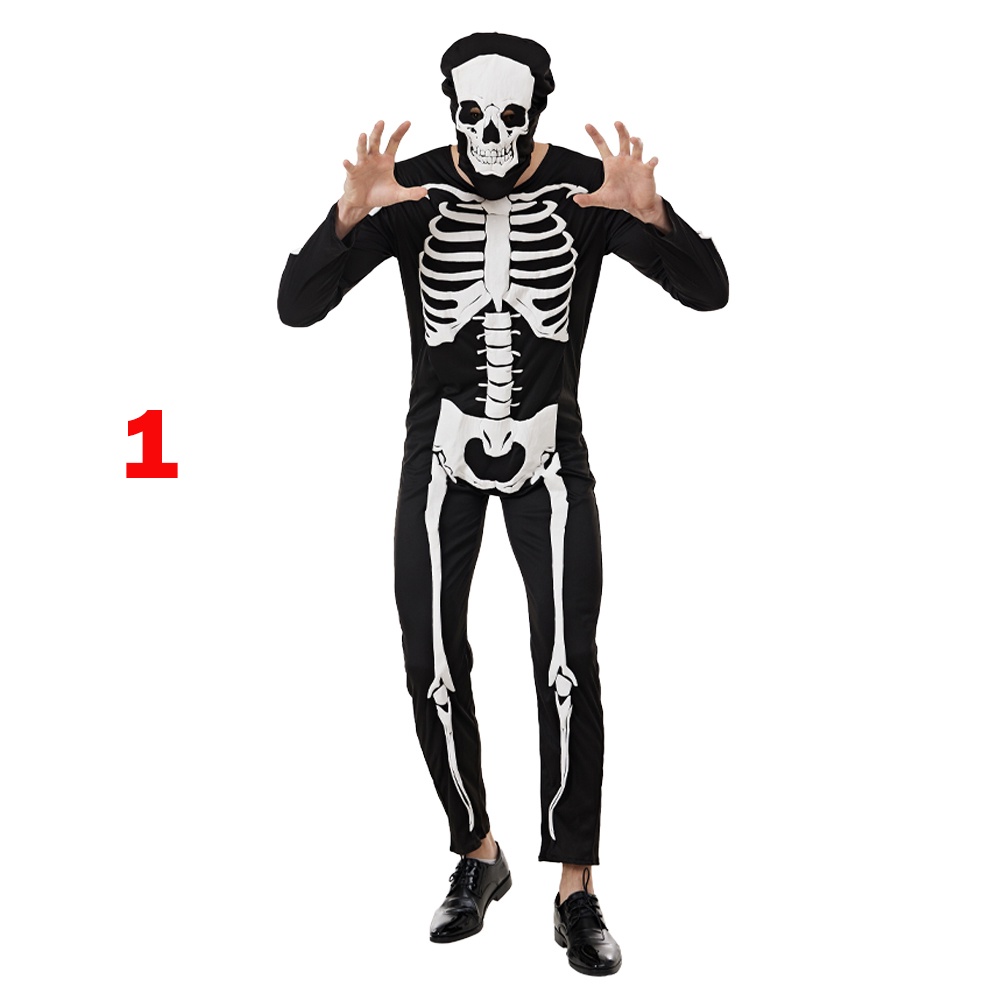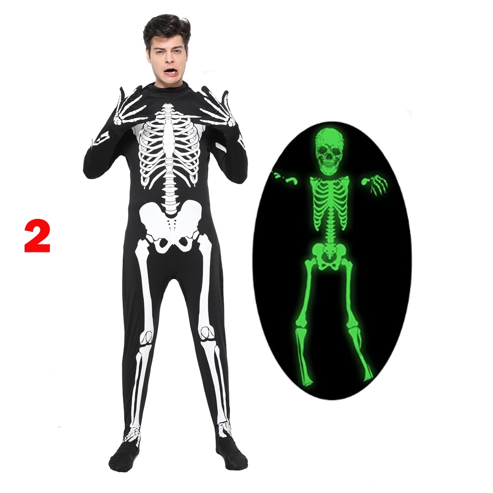 ❤พร้อมส่ง❤ชุดฮาโลวีนน่ากลัวโครงกระดูก ชุดจั๊มสูทคอสเพลย์หัวกะโหลกสยองขวัญสำหรับผู้ใหญ่ ชายหญิงกะโหลกผิวพิมพ์บอดี้สูทเต็มขนาดบวก 3 สไตล์สามารถเลือกได้