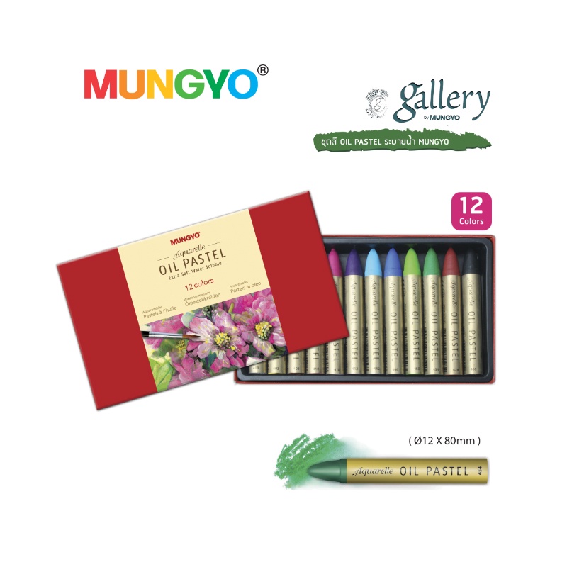 สีชอล์คระบายน้ำ MUNGYO OIL PASTEL 12สี เเละ 24สี (Watersoluble oil pastels) เกรดอาร์ทติส เนื้อสีนุ่มเรียบเนียน