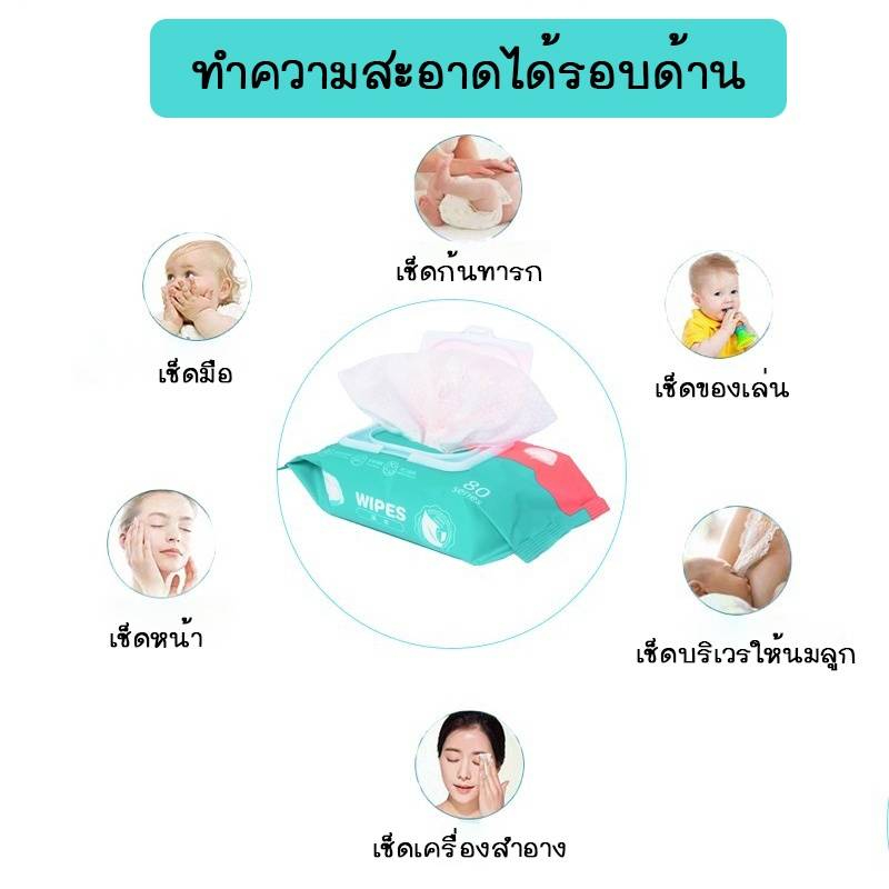 💖ทิชชู่เปียก Runbear ผ้าเปียกรันแบร์ Baby Wipes 80แผ่น สูตรน้ำแร่ อ่อนโยนต่อผิว ไม่มีแฮลกอฮอล์