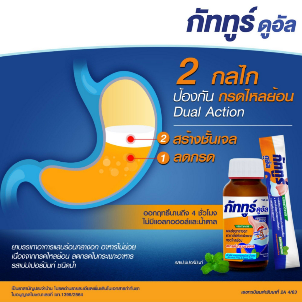 กัททูร์ ดูอัล Guttru Dual [1ซอง] บรรเทาอาการแสบร้อนกลางอก อาหารไม่ย่อยเนื่องจากกรดไหลย้อน #9580