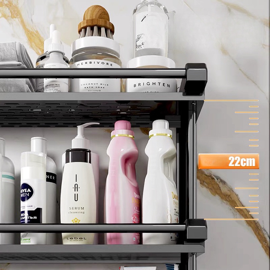 ชั้นวางห้องน้ำ ชั้นวางของในห้องน้ำ ไม่เจาะผนัง ไม่เป็นสนิม พร้อมราวตากผ้าและตะขอ ราวตากผ้าในห้องน้ำ