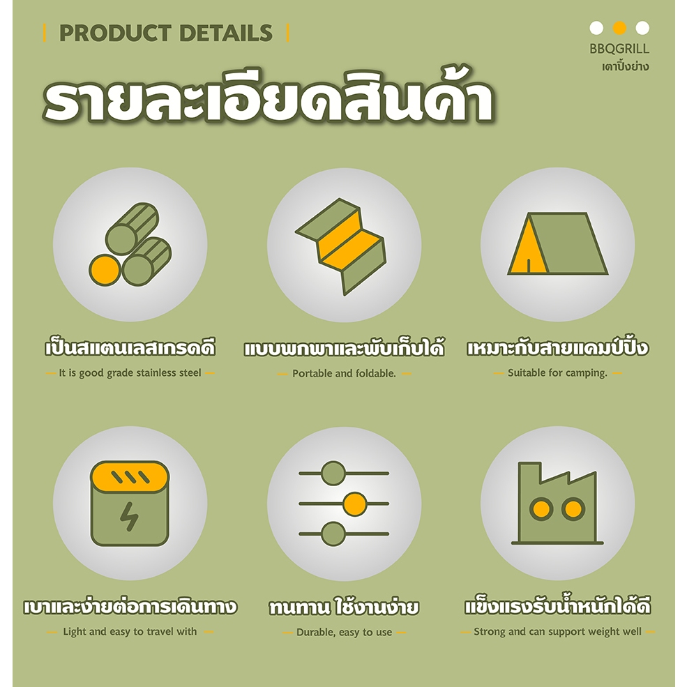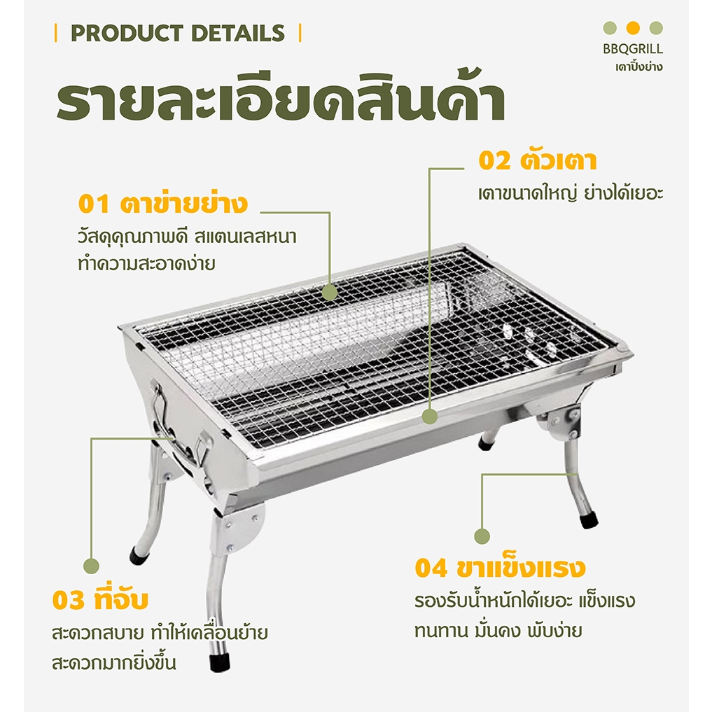 💯เตาปิ้งย่างสแตนเลส ACE HOME พับเก็บได้ มีที่จับ วัสดุแข็งแรง BBQ GRILL Model : BBQ