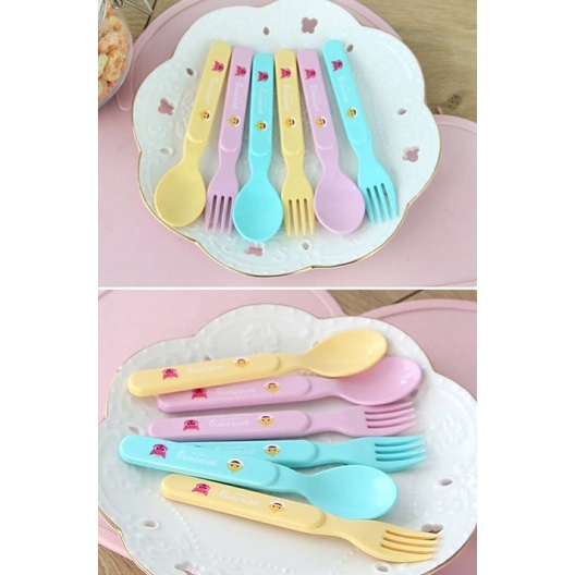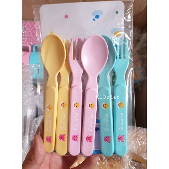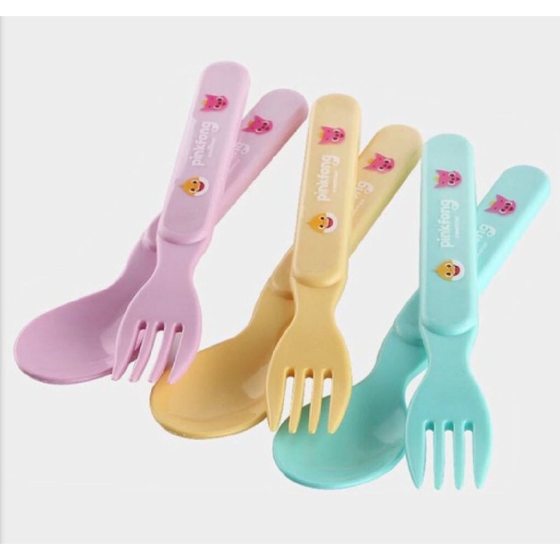 ชุดช้อนพลาสติกสำหรับเด็ก set 3 คู่ จาก Pinkfong ลิขสิทธ์แท้