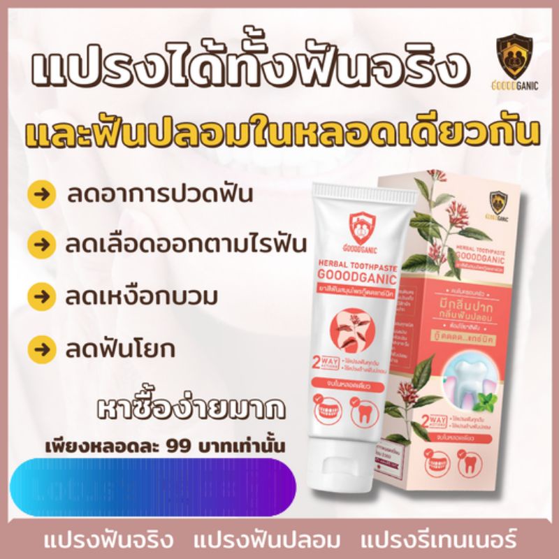 ยาสีฟันสมุนไพรกู๊ดแกนิคสูตร1หลอดชมพู ขายดี การันตรีด้วยรางวัล ของแท้💯%