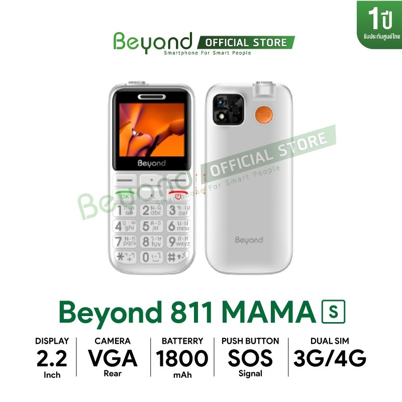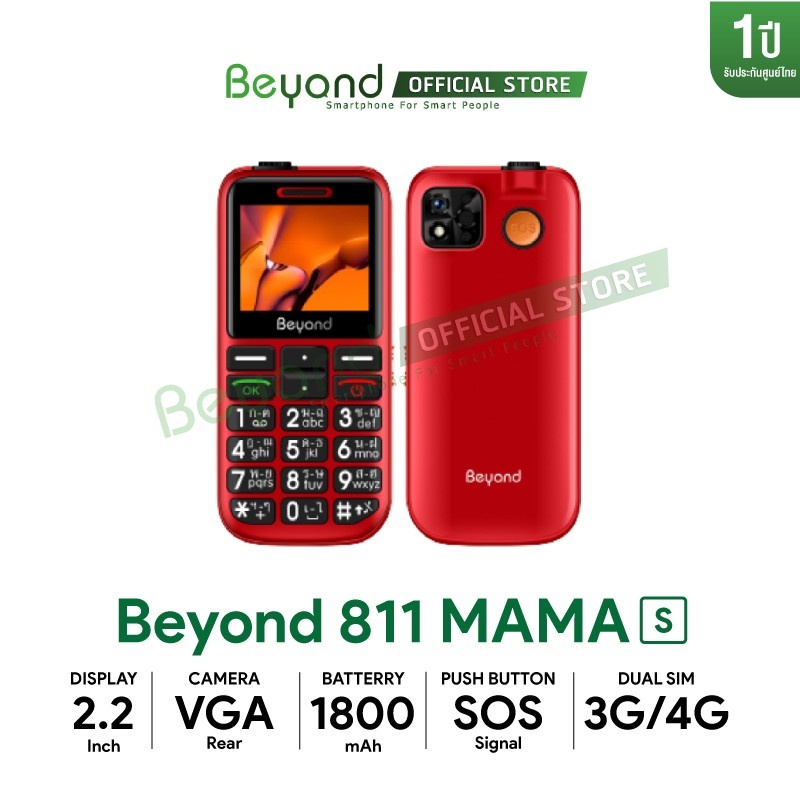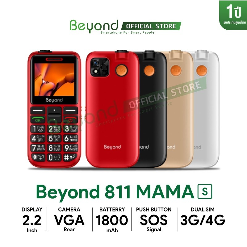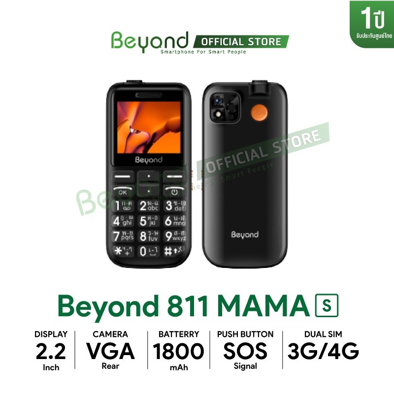 Beyond 811mama-S รองรับ 3G/4G มือถือปุ่มกดผู้สูงอายุ เสียงดัง ปุ่มใหญ่ ใช้ง่าย ประกันศูนย์ไทย 1 ปี