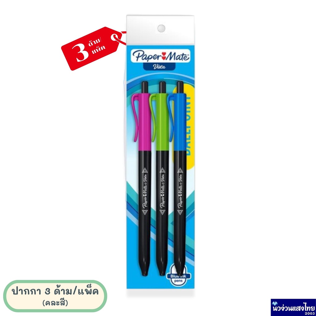 Papermate ปากกาลูกลื่น ปากกา หัว 0.7mm 🔥รุ่น Vista แพ็ค 3 ด้าม🔥 *หมึกสีน้ำเงิน* หมึกน้ำมัน เขียนลื่น ไม่สะดุด Newell
