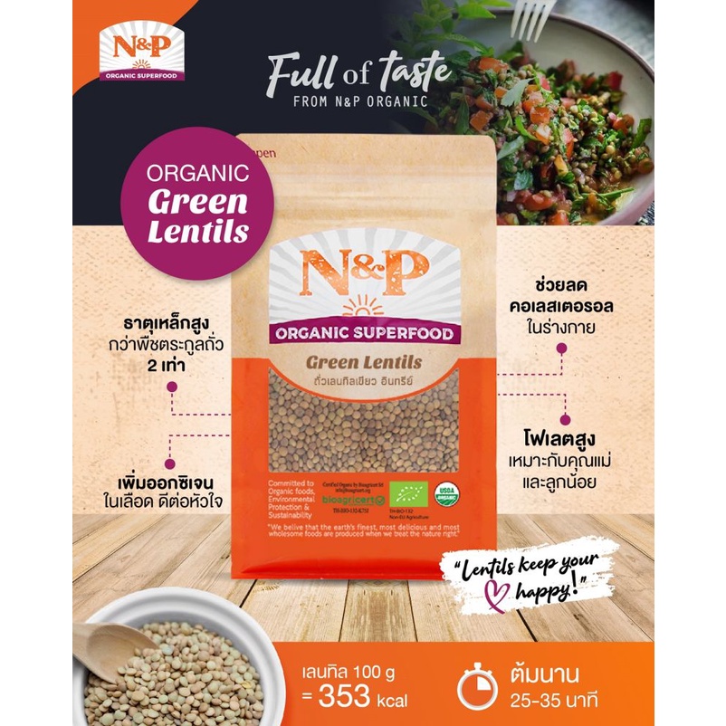 Natural & Premium N&P Organic ถั่วเลนทิลเขียว ออร์แกนิค ปริมาณ 300 กรัม Organic Green Lentils Beans (300g)