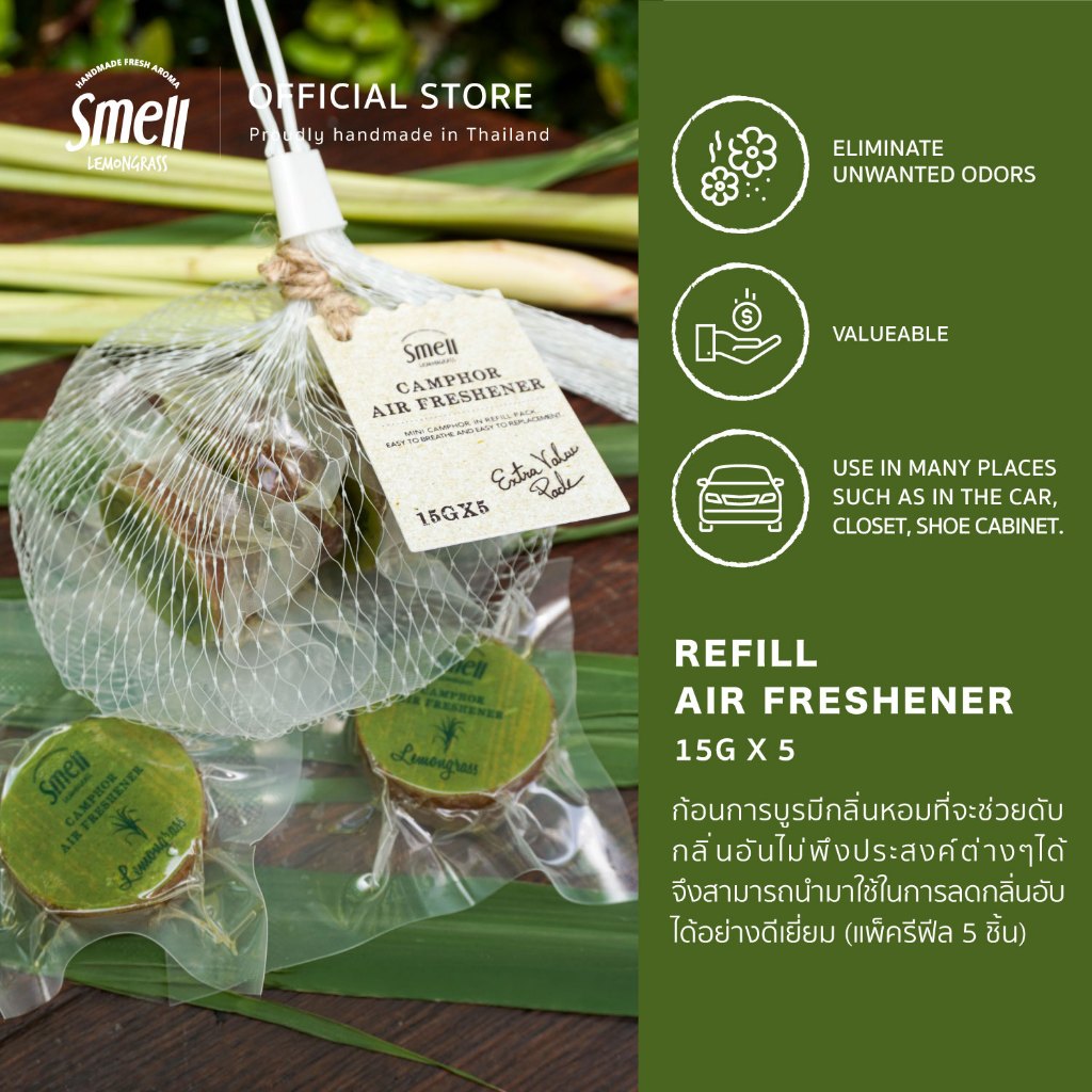 Smell Lemongrass Refill Baby Air Freshener 15Gx5 เซ็ตรีฟิลก้อนการบูร 15 กรัม บรรจุ 5 ชิ้น (มีหลายกลิ่น)