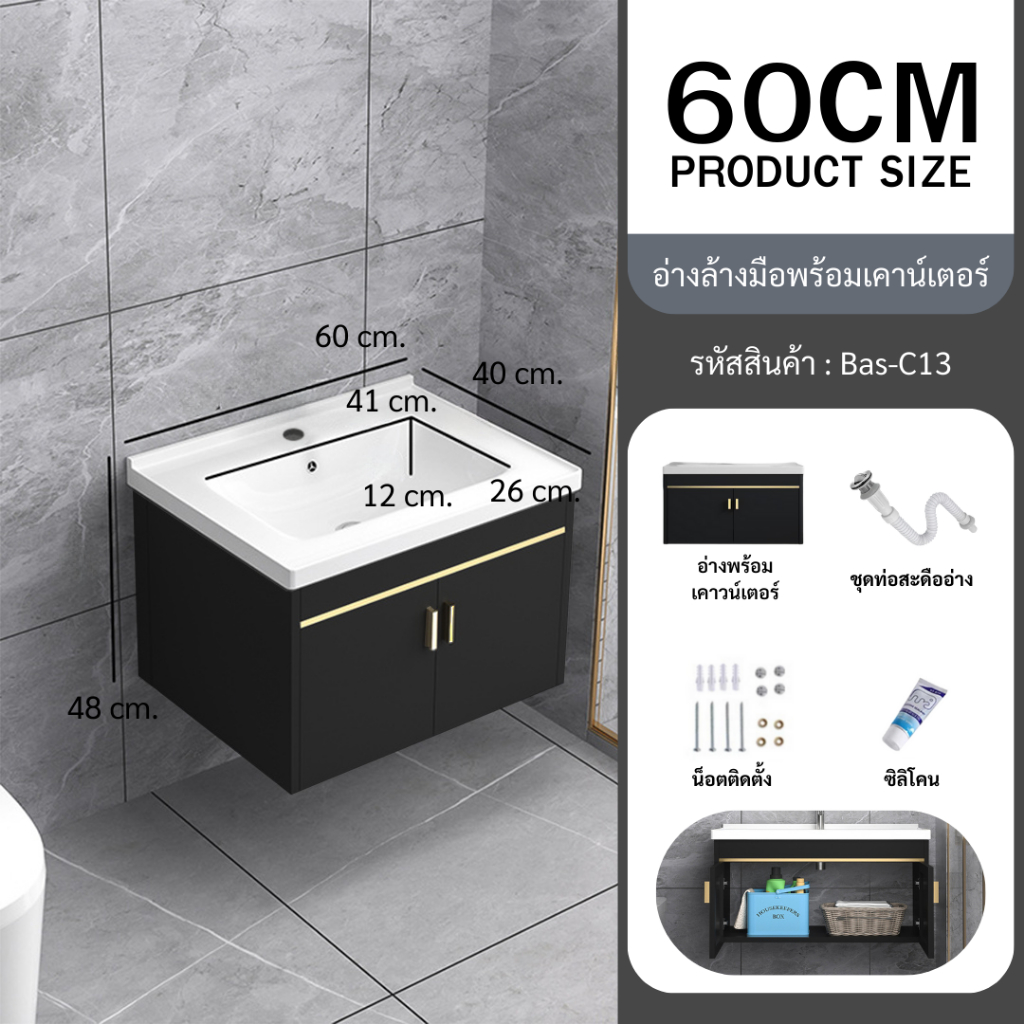 Forward อ่างล้างหน้าพร้อมตู้เคาน์เตอร์ อ่างล้างมือ สีดำ ตู้วัสดุไม้เทียม มีให้เลือก2ขนาด basin cabinet รุ่น Bas-C12/C13