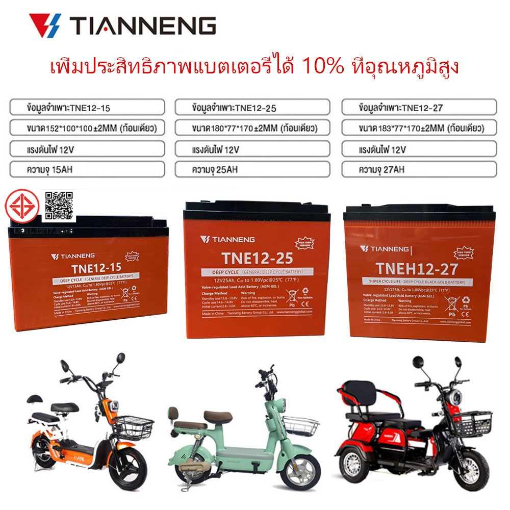 GOWEI แบตเตอรี่แห้ง 12V 12ah 20ah 15ah 25ah 27ah แบตเตอรี่ตะกั่ว แบตเตอรี่จักรยานไฟฟ้า รถไฟฟ้า มอเตอร์ไซด์ไฟฟ้า แท้100%