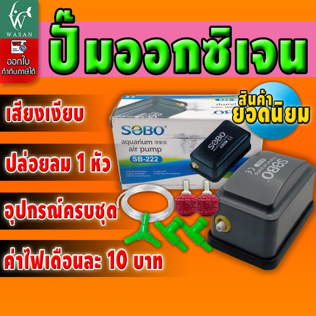 ปั้มออกซิเจน SOBO SB-222 ปั้มลมขนาดเล็ก ปั้มลมเพิ่มอ๊อคซิเจนในตู้ปลา 1 ทาง ปลา กุ้ง ปัมลมตู้ปลา