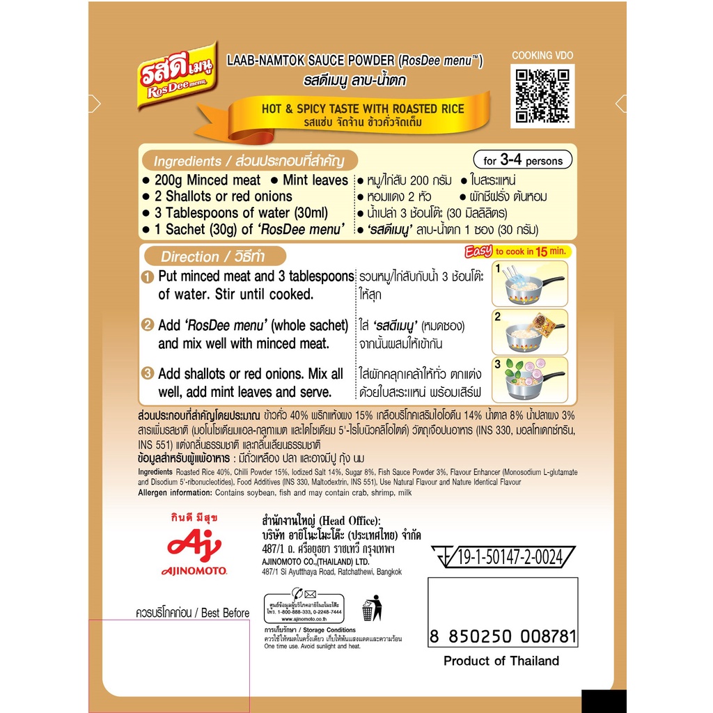 ROSDEE MENU LABB-NAMTOK 30G (PI) x 10 Sachet รสดีเมนู ซอสลาบ-น้ำตกปรุงสำเร็จ ชนิดผง 30 กรัม