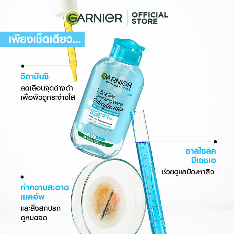 [แพ็คคู่สุดคุ้ม] การ์นิเย่ ไมเซล่า คลีนซิ่ง วอเตอร์ ซาลิไซลิค บีเอชเอ Blue 400มล. GARNIER MICELLAR CLEANSING WATER SALIC