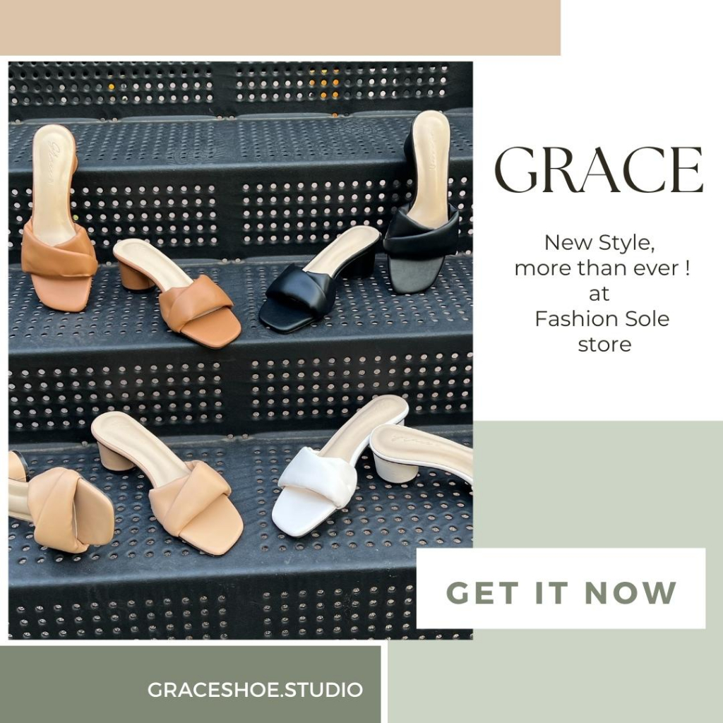GRACE รุ่นสูงพับใหม่ 36-45 รองเท้าแตะส้นสูง แฟชั่นส้นสูง 2 นิ้ว ไซส์ 36-45 ไซส์ใหญ่