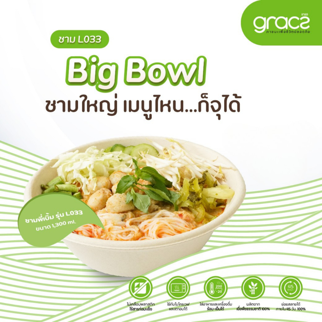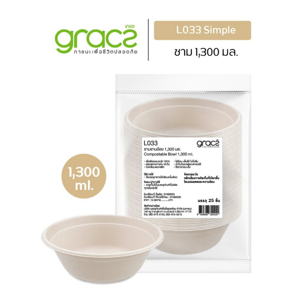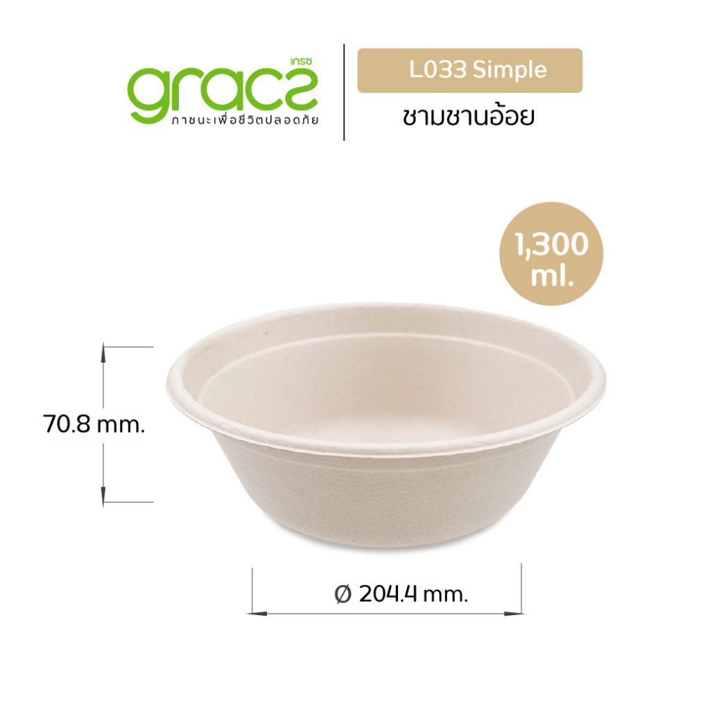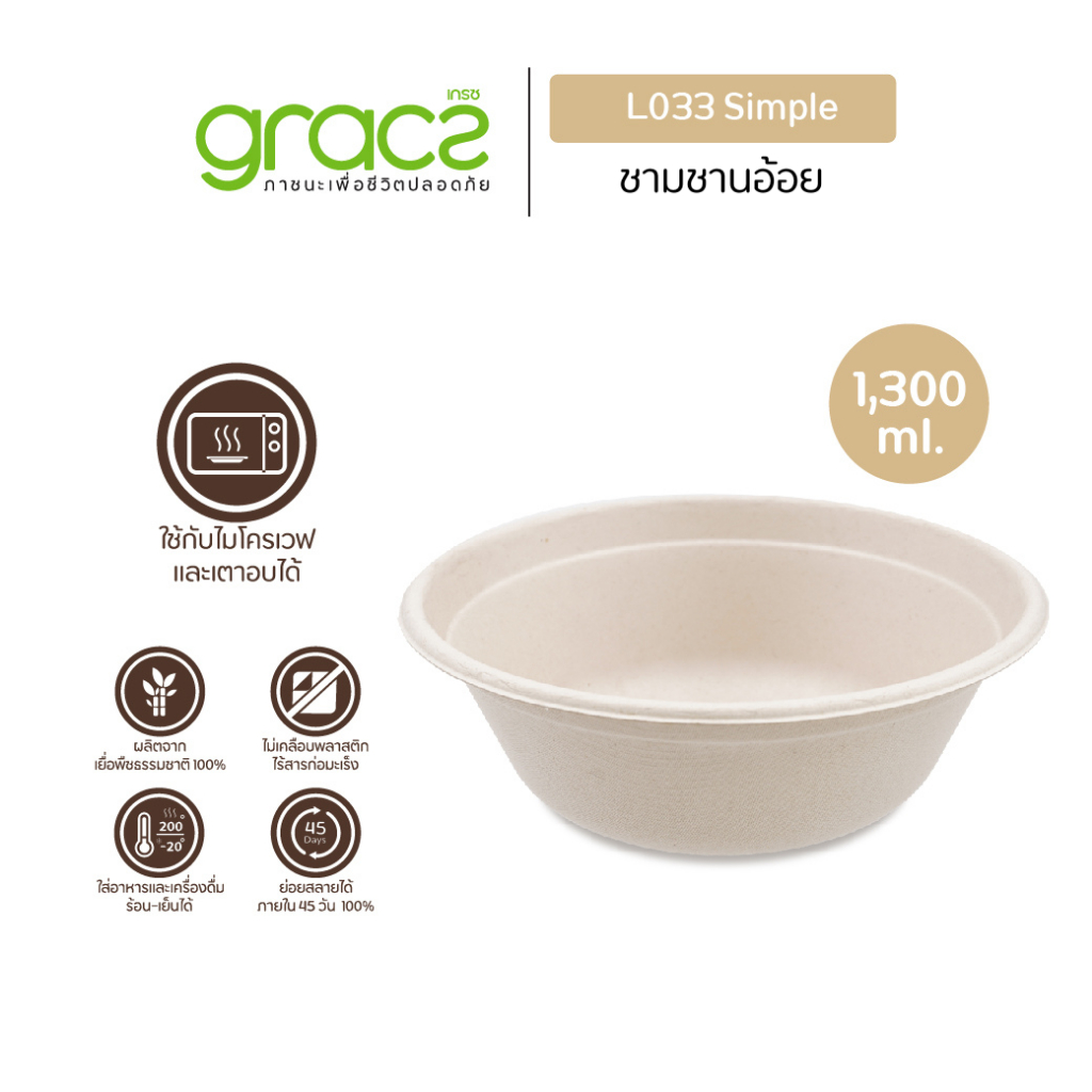 GRACZ ชามอาหาร 1,300 ml. รุ่น L033 (แพ็ค 25 ชิ้น) (เกรซ ซิมเปิล) ชามกระดาษ ถ้วยกระดาษ ชานอ้อย เข้าไมโครเวฟได้