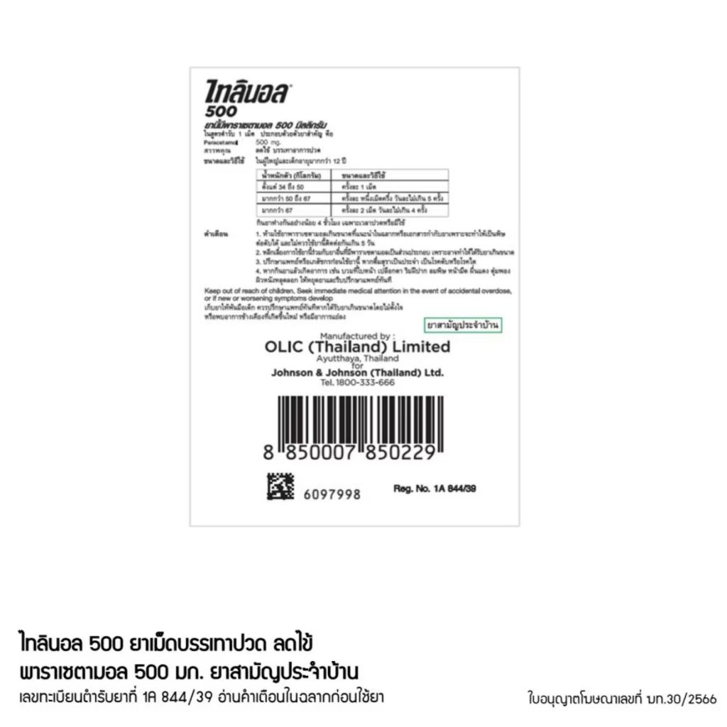 ไทลินอล TYLENOL 500 mg ไทลินอล 500 มก. พาราเซตามอล ยาสามัญประจำบ้าน บรรเทาปวด ลดไข้ พร้อมส่ง