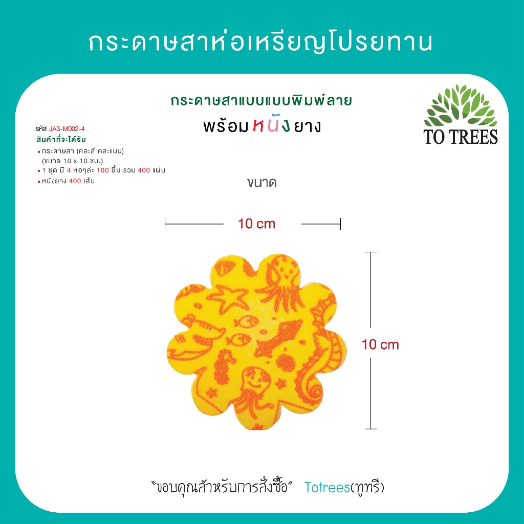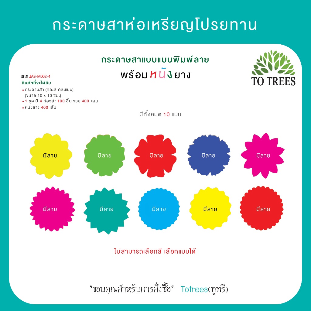 Totrees กระดาษสาห่อเหรียญโปรยทานแบบพิมพ์ลายลาย กระดาษสา คละลาย ขนาด 4x4 นิ้ว พร้อมยางรัด จำนวน 400 ชิ้น รหัส JA3-M002-4