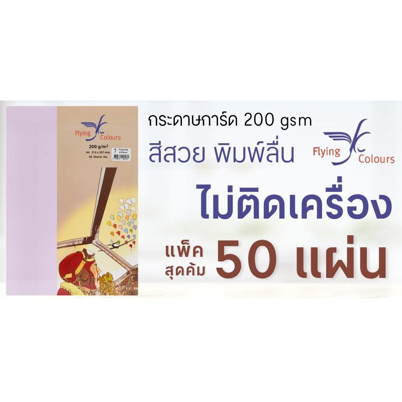 FLYING กระดาษการ์ดสี A4 200 แกรม No.07 สีม่วง (แพ็ค 50 แผ่น)