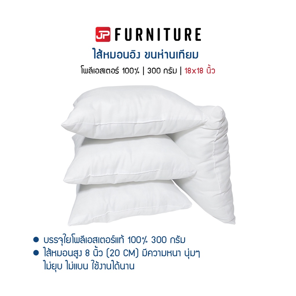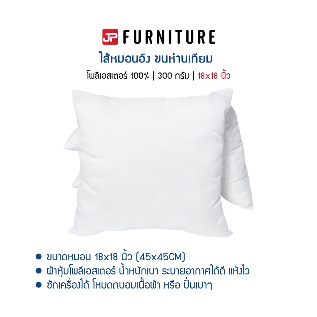ไส้หมอนอิง 18 นิ้ว (แพ็คคู่ 2 ใบ) ขนห่านเทียม ใยสังเคราะห์ 100% เกรด A ซักเครื่องได้