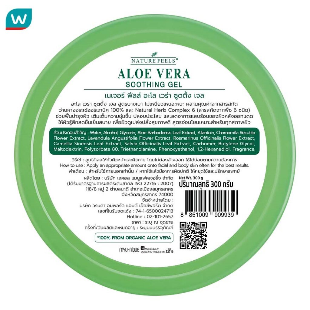 Nature Feels เนเจอร์ ฟีลส์ อะโล เวร่า ซูตติ้ง เจล 300 มล. เจลว่านหางจระเข้ ผิวชุ่มชื้น