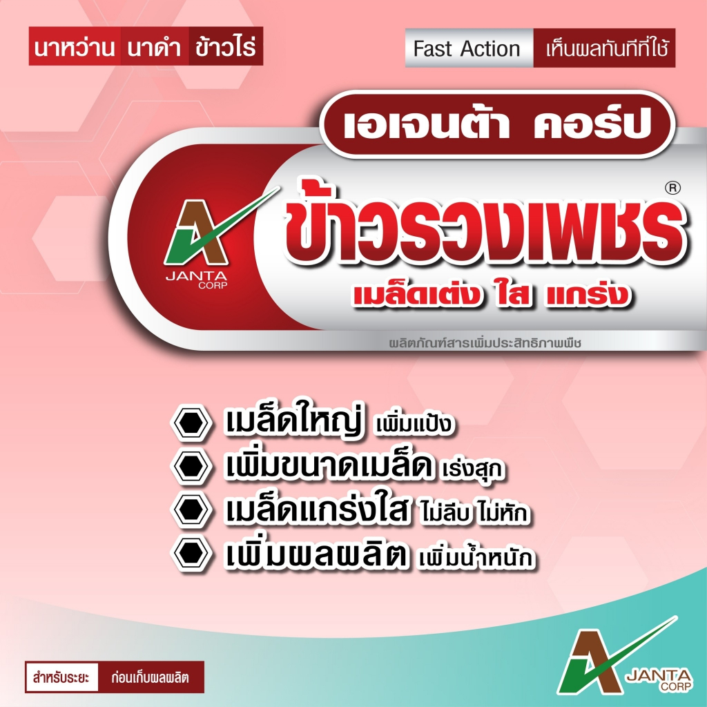 ข้าวรวงเพชร ลมเบ่ง เร่งสุก เพิ่มน้ำหนัก เอเจนต้า คอร์ป สร้างแป้งข้าว เมล็ดแกร่ง ไม่ลีบ ไม่หัก ใช้ก่อนเก็บผลผลิต