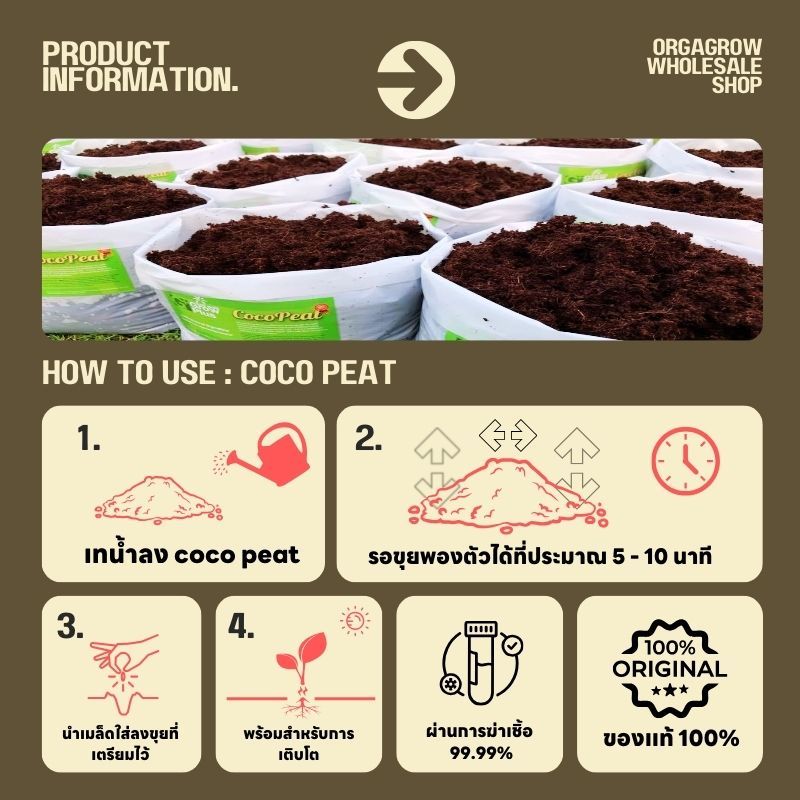 ขุยมะพร้าวล้างแทนนิน 100% ราคาถูกสุดๆ!! Coco Coir Peat อัดก้อน Coco Coir Low EC Low Tanin ขนาด 5 KG