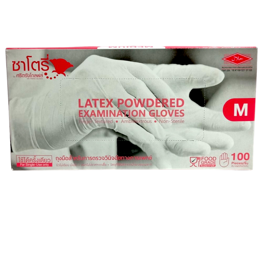 ซาโตรี่ ศรีตรังโกลฟส์ ถุงมือสำหรับการตรวจวินิจฉัยทางการแพทย์ มีแป้ง S/M/L 100ชิ้น