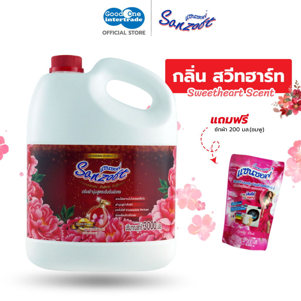 SANZOFT แซนซอฟ น้ำยาปรับผ้านุ่มสูตรเข้มข้นพิเศษ 3000 มล.(แถมฟรี น้ำยาซักผ้า 200 มล.)