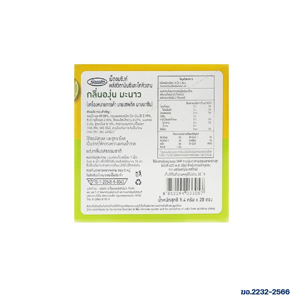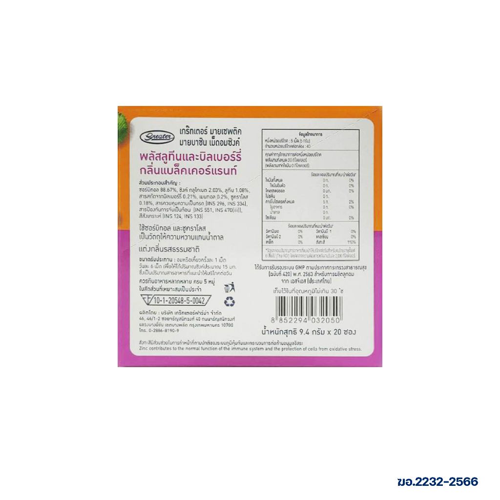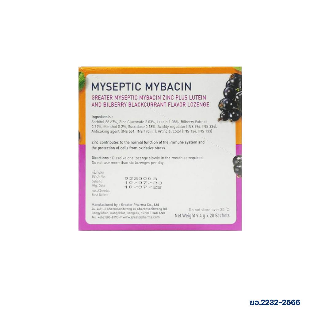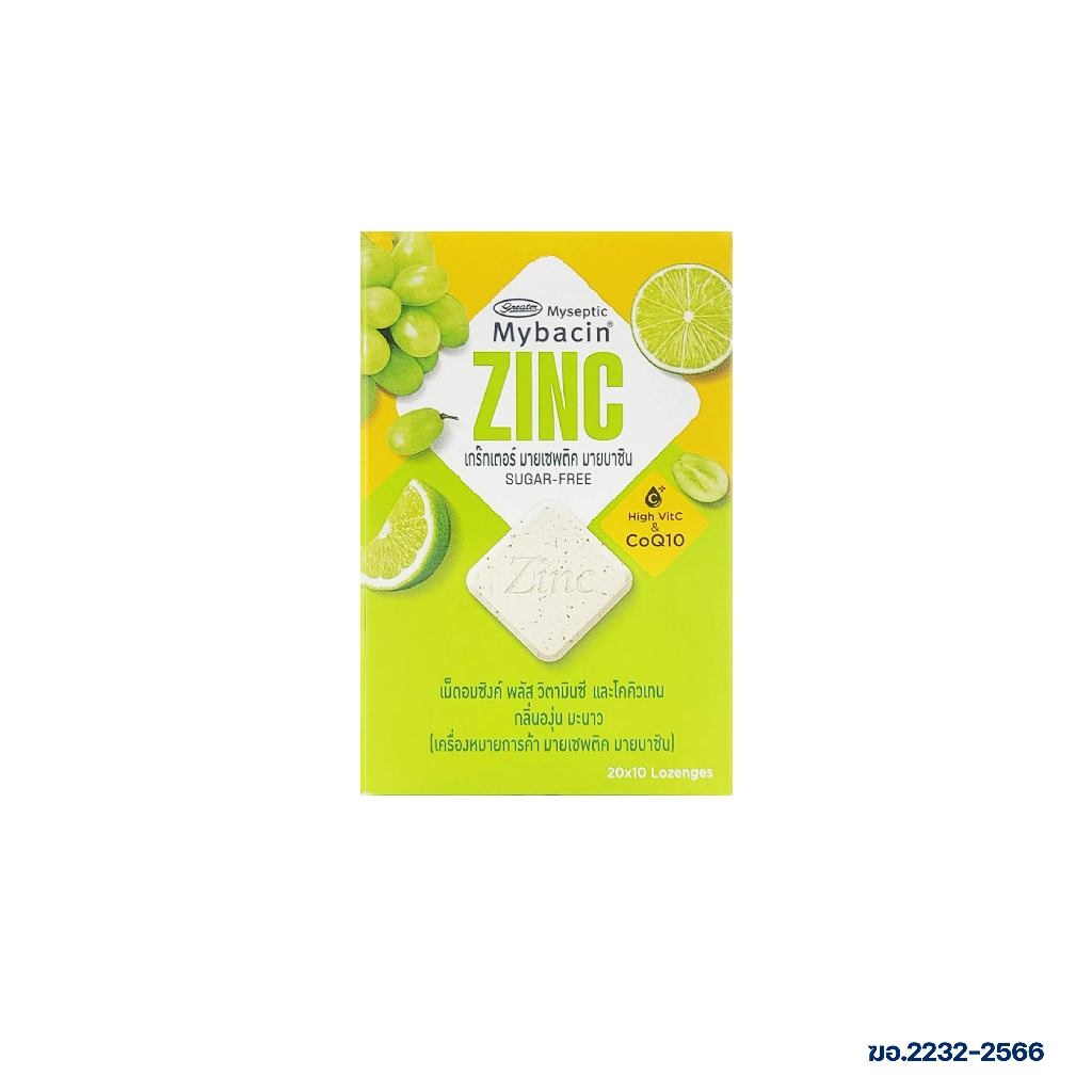 เม็ดอมซิงค์พลัส กลิ่นแบล็คเคอร์แรนท์ & องุ่น มะนาว 20ซองx10เม็ด แพ็ค2กล่อง Mybacin