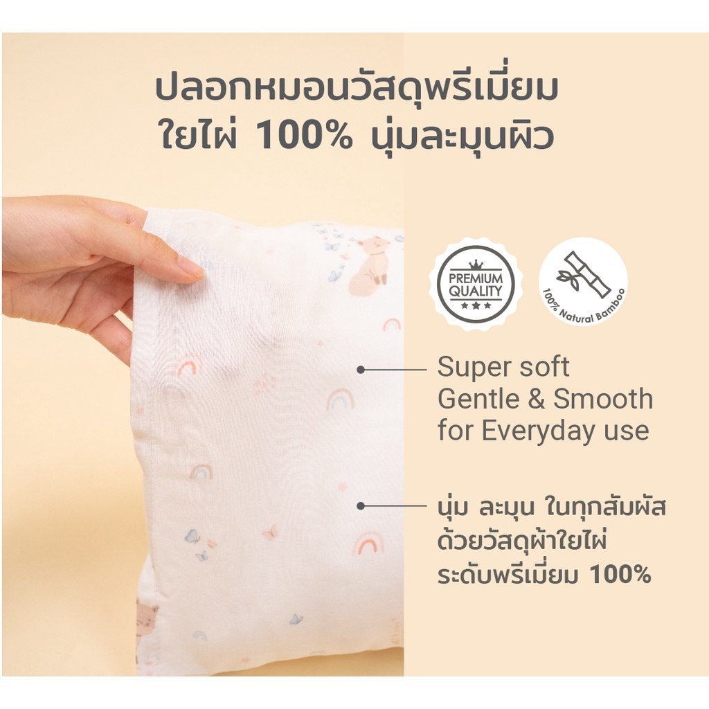 SNOW OWL หมอนเด็กพร้อมปลอกใยไผ่ 100% ขนาด แรกเกิด+ หมอนระบายอากาศในตัว นอนแล้วเหงื่อแห้งไว ไม่ร้อน Baby Pillow