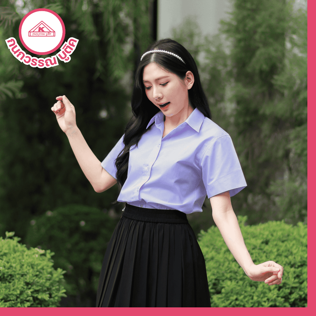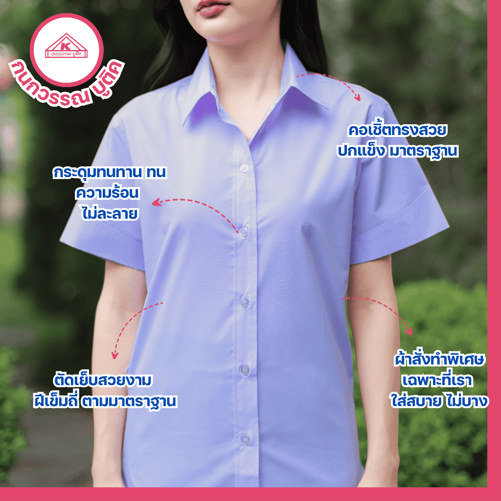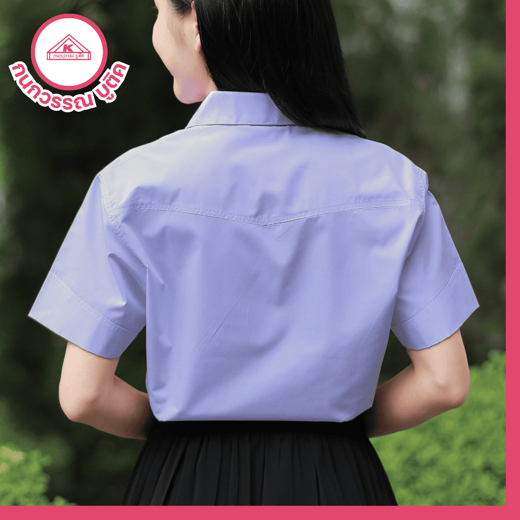เสื้อนักศึกษาหญิง ขาวโอโม่ แขนสามเหลี่ยม เข้ารูป หลังแหลม