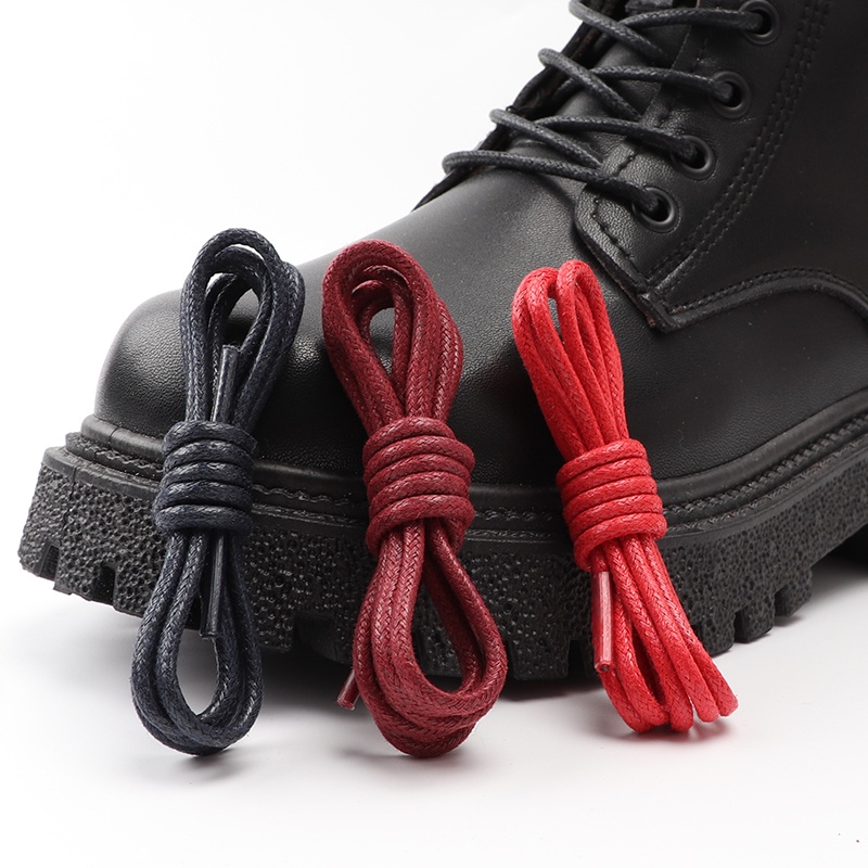 เชือกผูกรองเท้าหนัง ผ้าออกซ์ฟอร์ด เคลือบผ้าฝ้าย ทรงกลม กันน้ํา สําหรับผู้หญิง และผู้ชาย 1 คู่