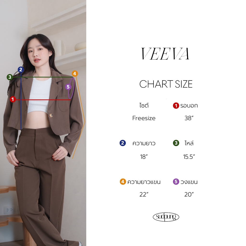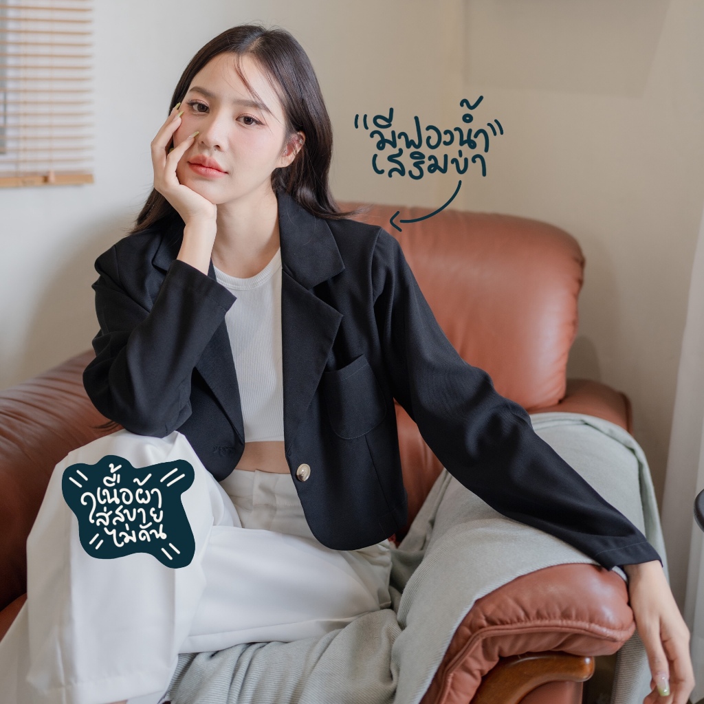 Veeva_SP012 – เบลเซอร์ครอปสุดปัง ทรงเกาหลี ผ้านิ่มพรีเมียม สีสุภาพ ใส่แล้วดูแพงแบบมีคลาส | SudPung