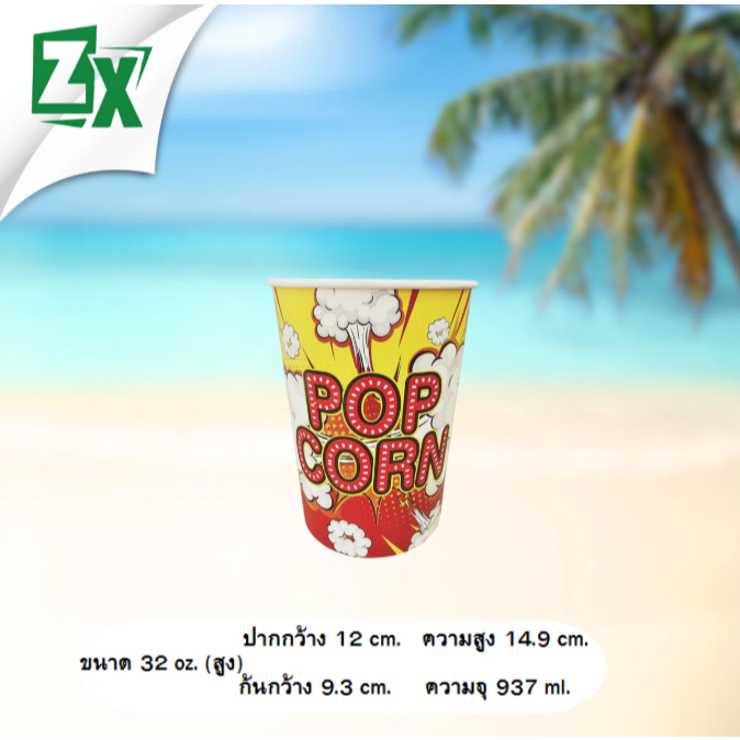 ZX ถ้วยป๊อบคอร์น 32 oz. (ทรงสูง คละลาย) 500 ใบ/ลัง