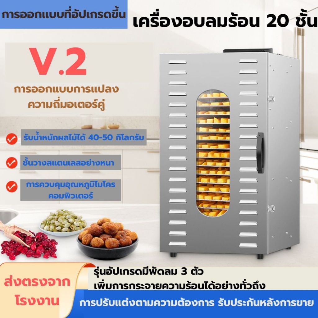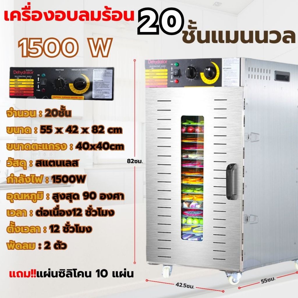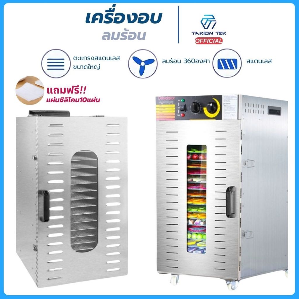 Taktion ประกัน1ปี ตู้อบลมร้อน เครื่องอบลมร้อน 20/22 ชั้นตะแกรงใหญ่38x40cm แถมฟรีแผ่นซิลิโคน 10แผ่น วัสดุสแตนเลส