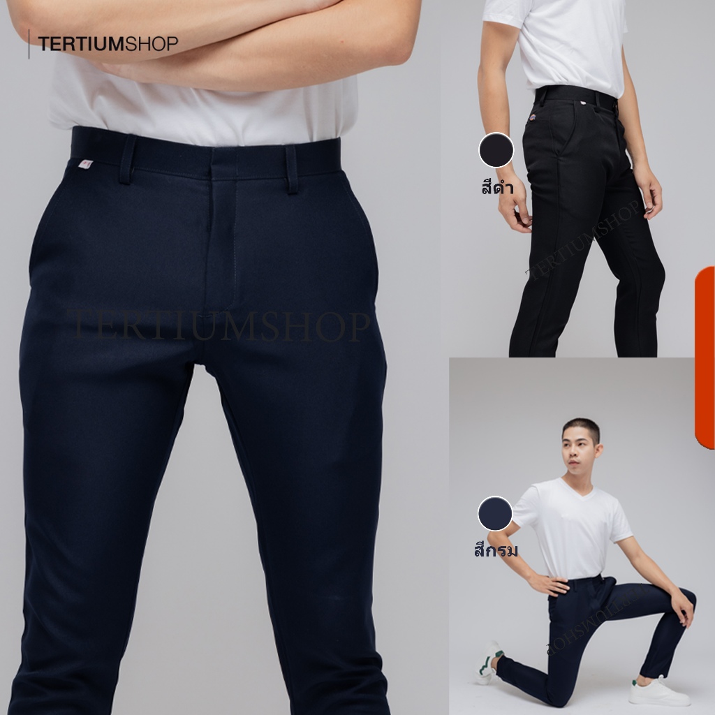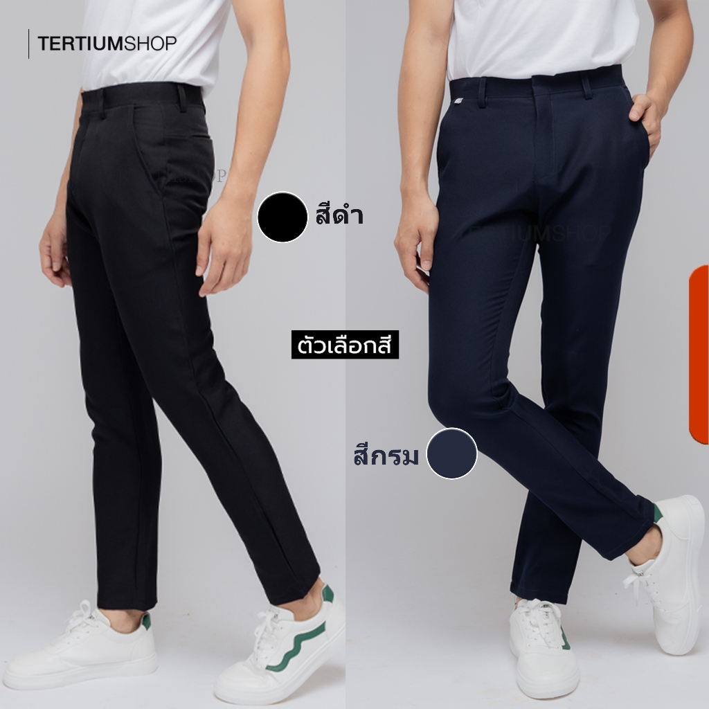 กางเกงสแล็ค ผ้าโซล่อน ทรงขาเดฟ ไม่มีจีบหน้า กางเกงทำงาน