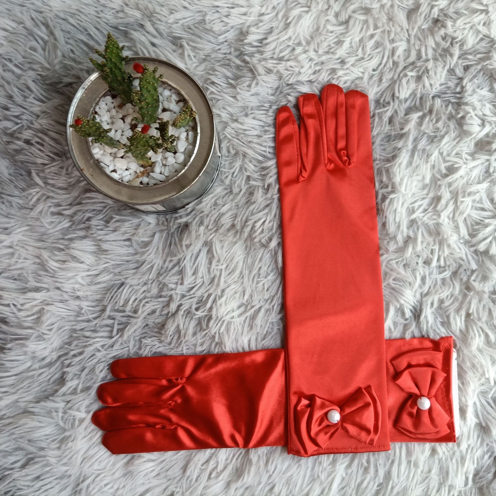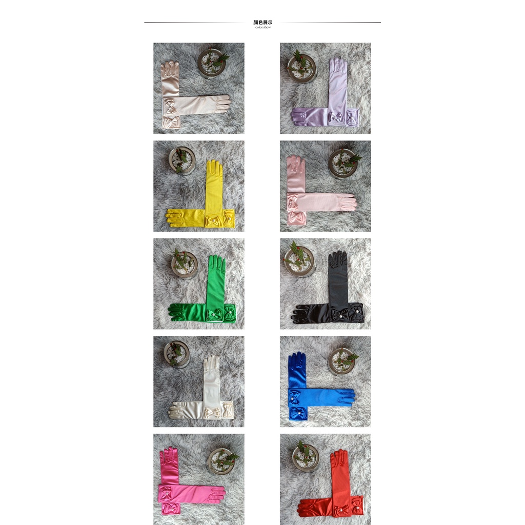 ถุงมือเด็กยาวผ้าซาติน แบบมีลูกปัดการแสดงบนเวทีของเด็กๆ