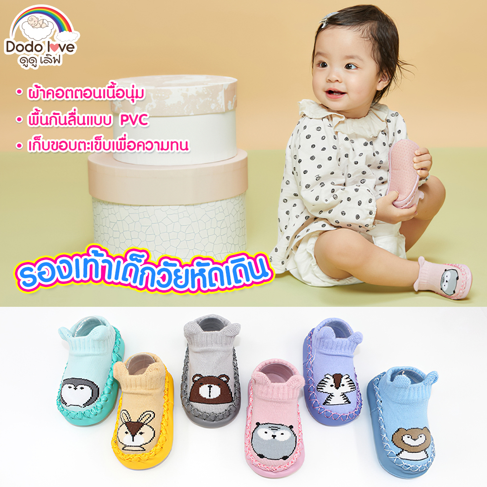 DODOLOVE รองเท้าเด็กหัดเดิน 01 สำหรับเด็กเล็ก ขอบยาง กันชน กันกระแทก ใส่สบาย พิ้นกันลื่นแบบ PVC