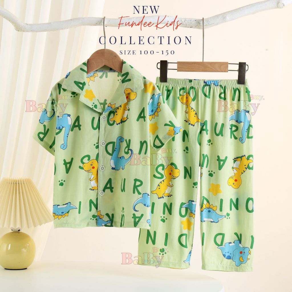 ชุดนอนเด็กคอปก แขนสั้นขายาว ชุดนอนเด็กชาย ผ้าฮาวายคอปกแขนสั้นขายาวมีกระดุมหน้า เนื้อผ้านุ่มใส่สบาย สีสันสดใส ไซส์100-120