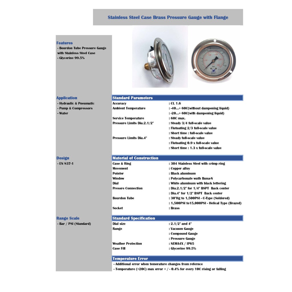 เกจแรงดัน 0-600Barหน้าปัด 2.1/2" ตัวเรือนสแตนเลส มีน้ำมัน มีปีก เกลียวทองเหลืองออกหลัง 1/4"