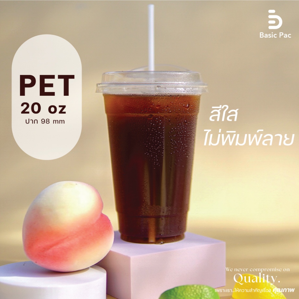 (50 ชุด) แก้ว PET สีใส ไม่พิมพ์ลาย ทรงตรง ขนาด 14oz 16oz 20oz 22oz ปาก 98 mm 50 ใบ หนาพิเศษ FPC