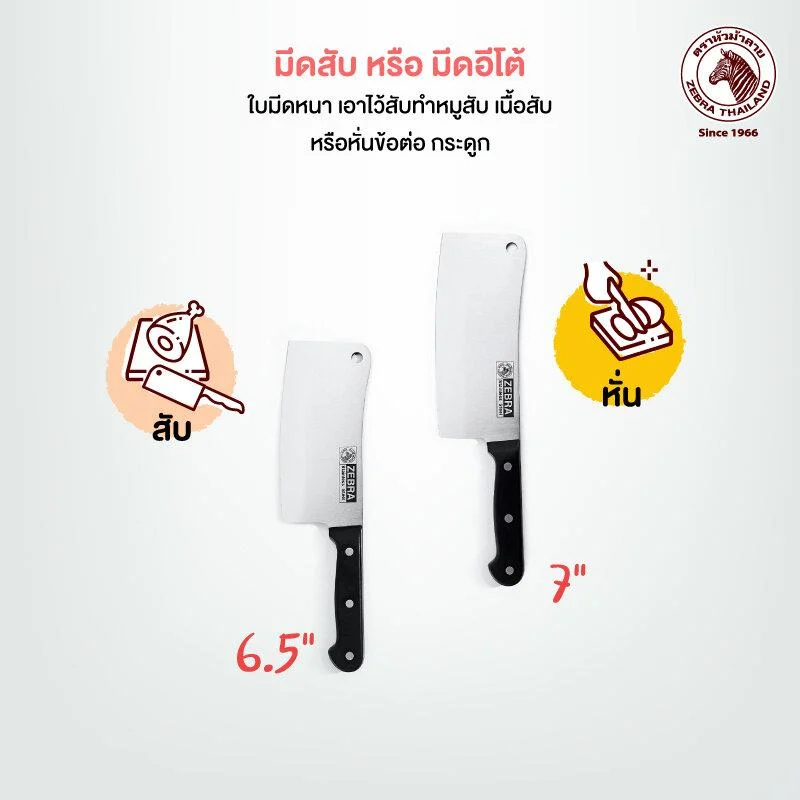 ZEBRA มีดสเตนเลส Chef ด้ามดำ มีดครัว มีดสับ มีดหั่น มีดซูชิ มีดแล่เนื้อ #ทวีชัย