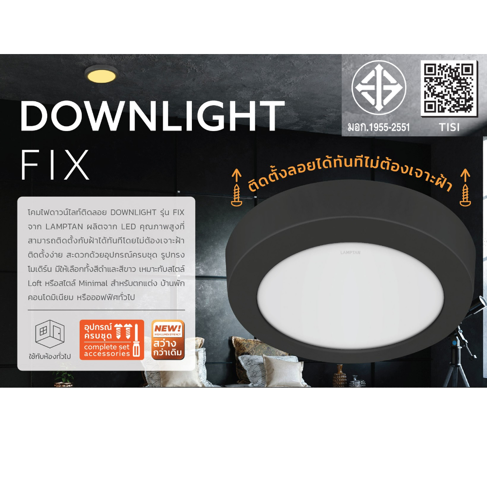 Lamptan ดาวน์ไลท์ติดลอย Downlight LED รุ่น FIX 12w 18w ขนาด 6นิ้ว 8นิ้ว สีดำ สีขาว ของแท้ แลมตัน