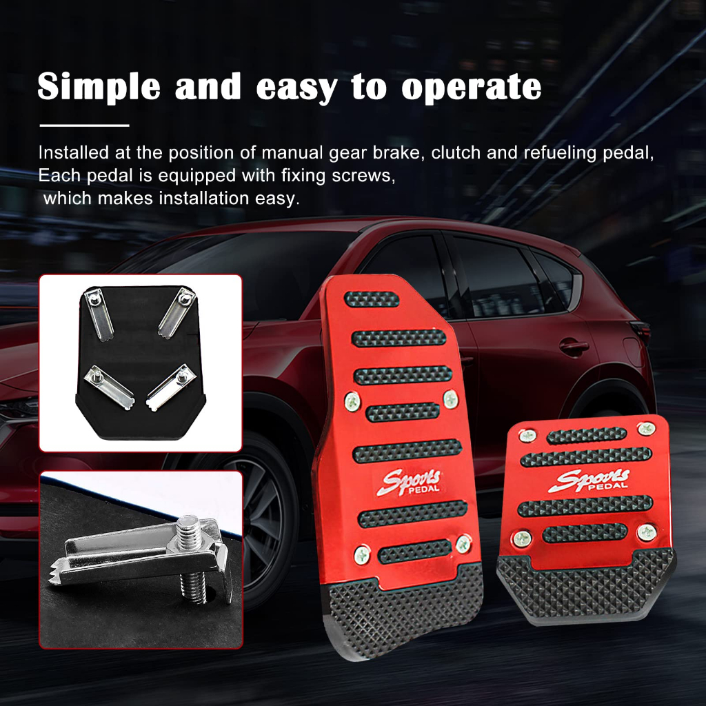 2pcs อลูมิเนียมเกียร์อัตโนมัติรถแก๊สสีน้ำเงินชุดสีแดงคันเหยียบคันเหยียบคันเร่งครอบคลุมชุดเบรกสากลที่ไม่ใช่ลื่น