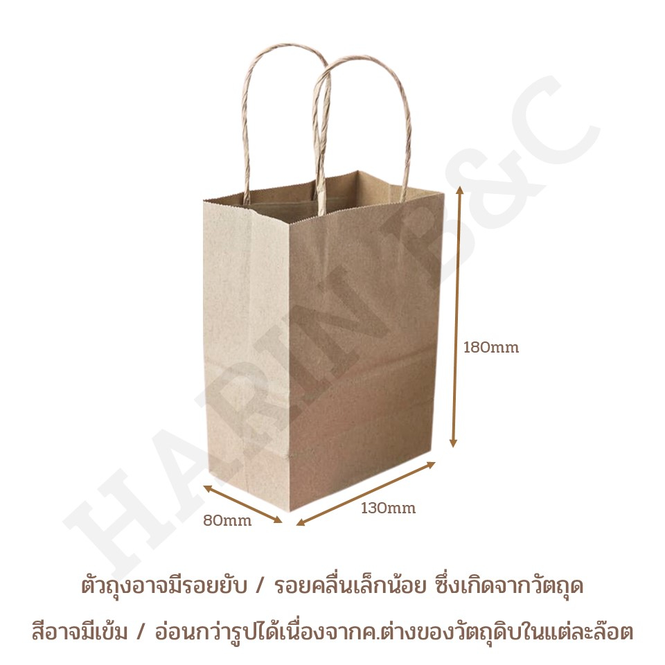 (50ใบ) ถุงกระดาษหูหิ้วน้ำตาล S ขนาด 13x8x18ซม. / Box Journey Kraft Paper Bag 13x8x18cm 50pcs No.0204022