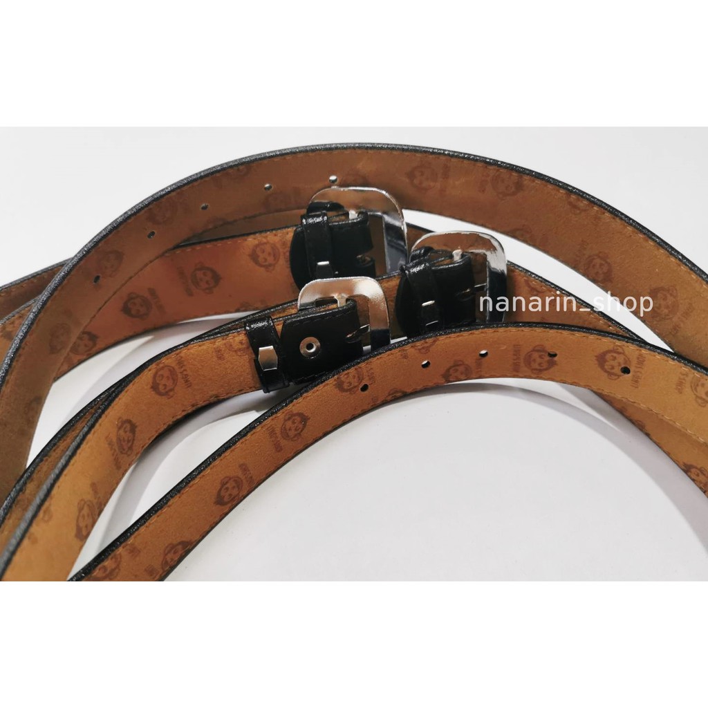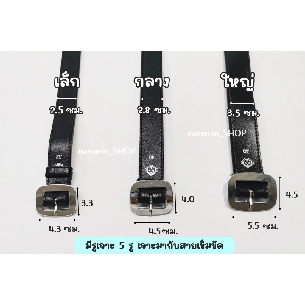 เข็มขัดนักเรียนชาย หัวเหลี่ยมเงิน-สายสีดำ(หนังนิ่ม)ตราลิง ความยาว 28-60 นิ้ว ระดับประถม-มัธยม