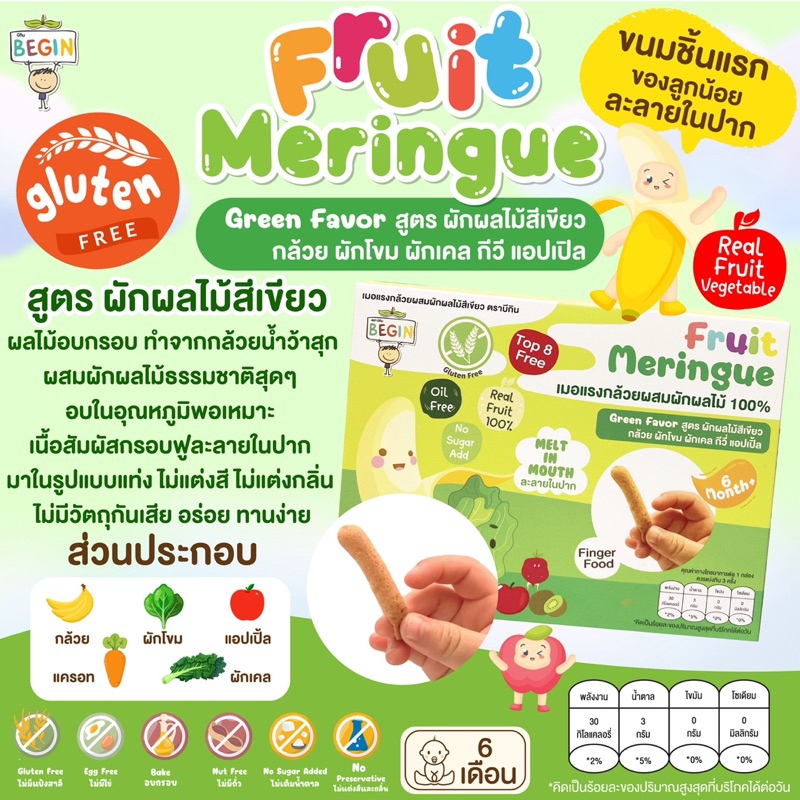 เมอแรงกล้วยผสมผักผลไม้ ละลายในปาก ขนมเด็ก 6 เดือนขึ้นไป ผลไม้สด100% ขนมสำหรับเด็กเริ่มทาน ขนมเด็กเล็ก ขนมเด็กละลายในปาก