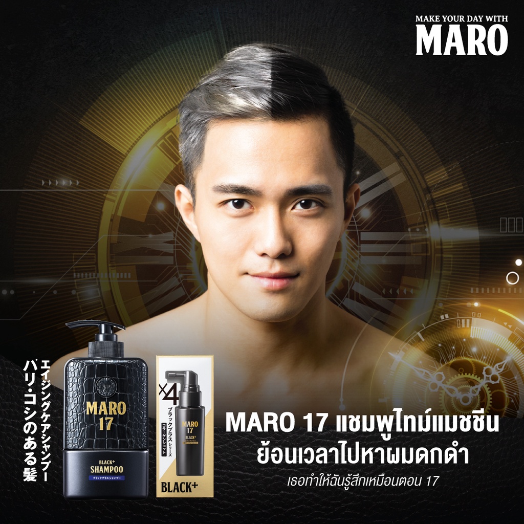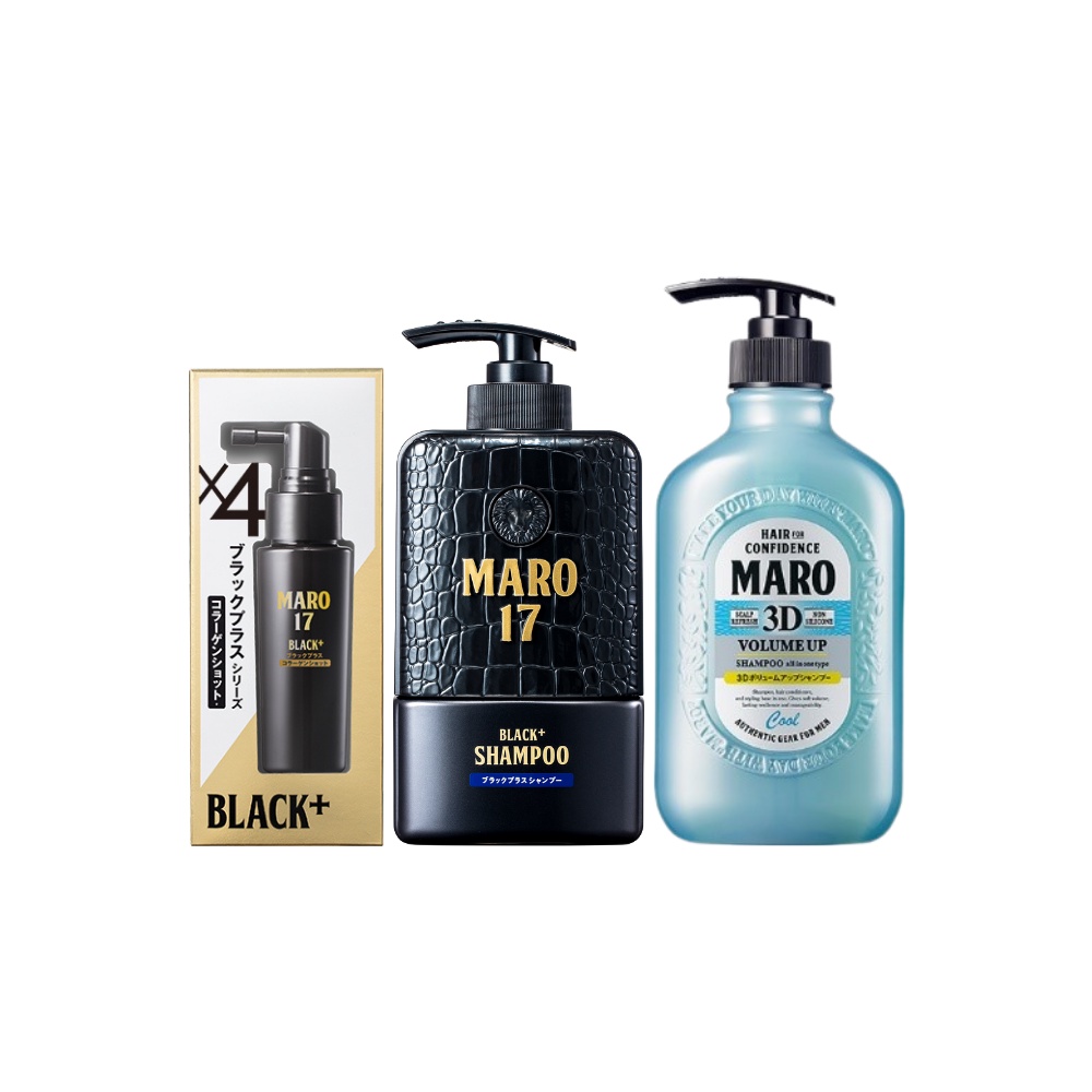 Maro 17 Black Plus & 3D Volume-Up [Cool]Shampoo เซ็ตผมดกดำ ไม่ร่วงและยาสระผมเพิ่มวอลลุ่ม สูตรเย็น มาโร่