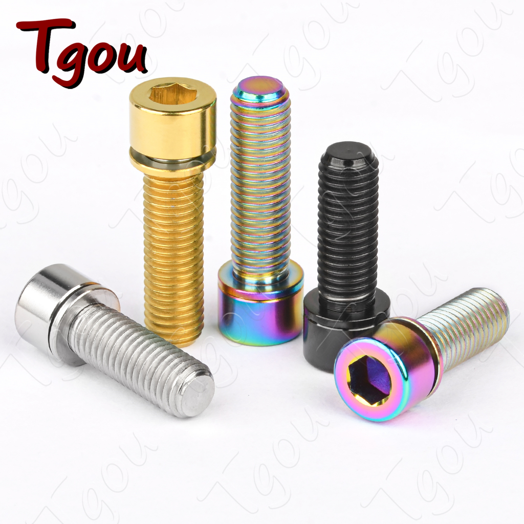 Tgou สลักเกลียวไทเทเนียม M7 x 20 25mm ไทเทเนียมสายฟ้าหัวทรงกระบอกกับเครื่องซักผ้าสกรูชิ้นส่วนจักรยาน